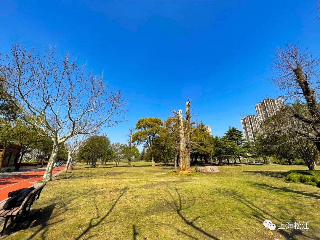 在这块“赛事级”的草坪上,曾举办过长三角风筝节等体育文化赛事,这里还有不少标志性的雕塑群,是松江及附近地区的市民最爱的春游打卡地。