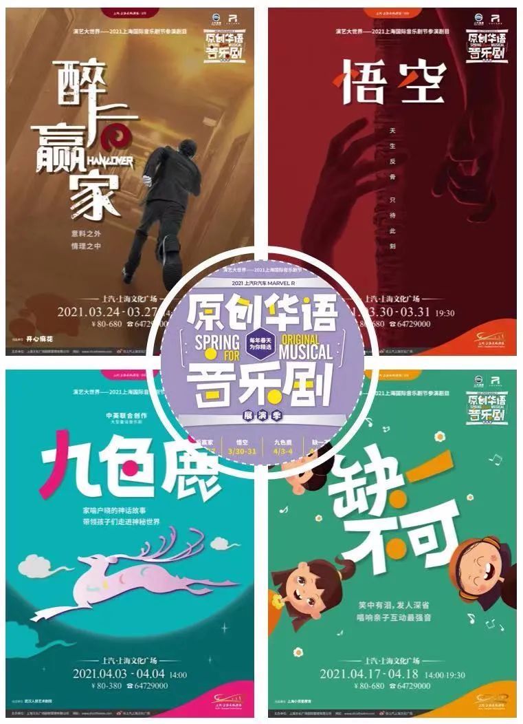 活动当天,恰逢“演艺大世界——2021上海国际音乐剧节”演出板块“2021上汽R汽车Marvel R原创华语音乐剧展演出季”正式鸣锣开演。在接下来的一个月里,《醉后赢家》《悟空》《九色鹿》《缺一不可》等四部优质原创华语音乐剧将轮番登台文化广场主剧场。