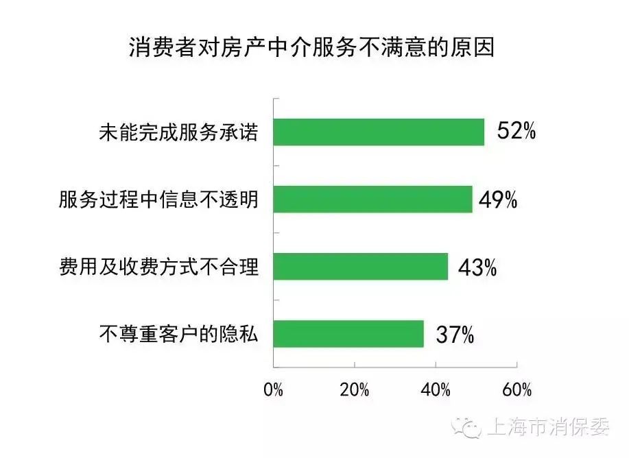 网上微调查显示,因承诺不履行、信息不透明、费用不合理,消费者对房产中介服务不满意。