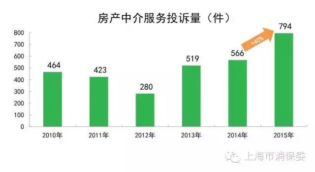 2015年市消保委受理的房产中介服务投诉量创新高,同比增长40%。