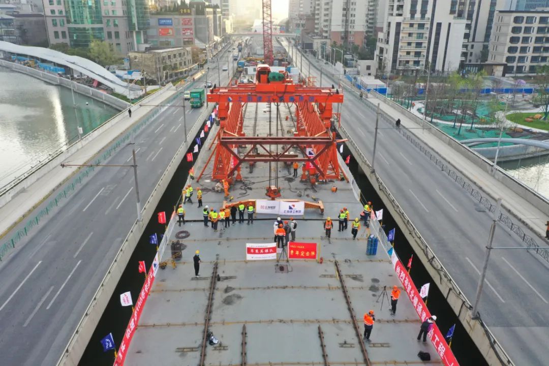 今天早晨,北横通道辅助工程——长寿路桥工程顺利完成了跨苏州河主桥结构合龙,为该工程今年6月底竣工通车奠定了基础。