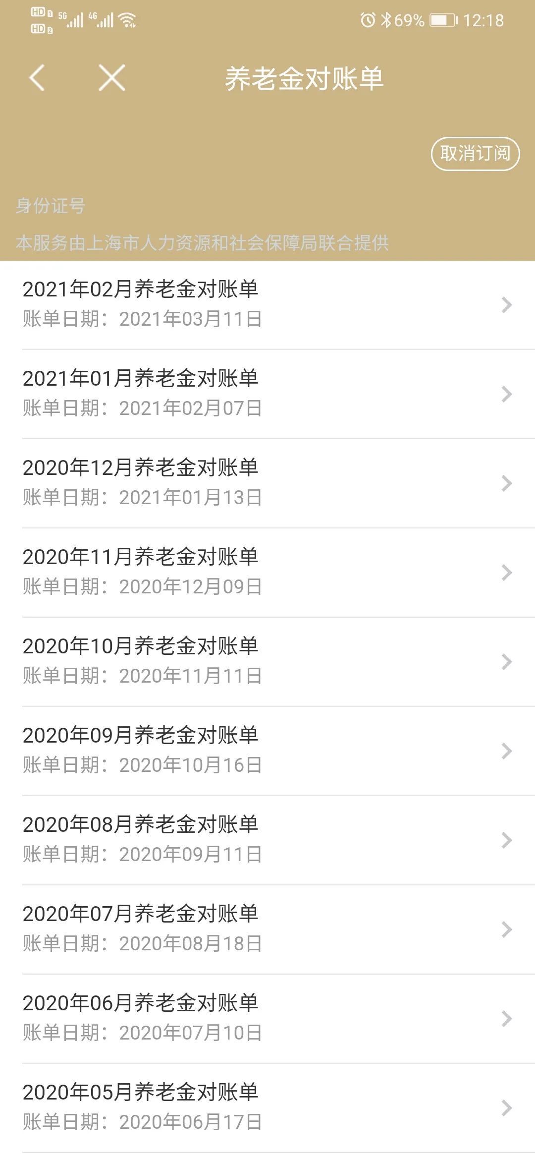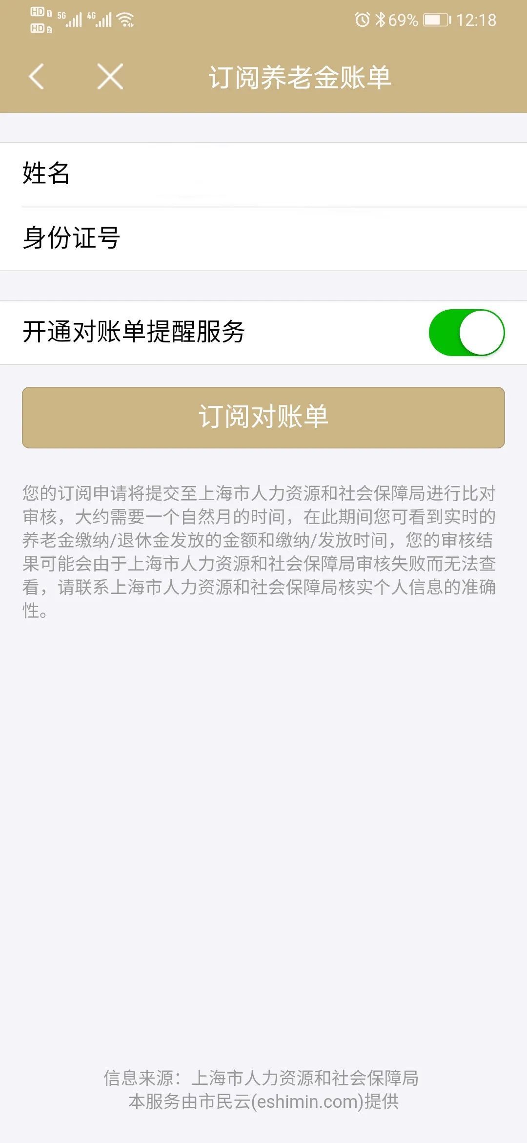 请您依次输入姓名、身份证号,选择“开通对账单提醒服务”,点击“订阅对账单”按钮。订阅成功后,您只需选择对应月份的养老金对账单,即可一目了然、尽在掌握。