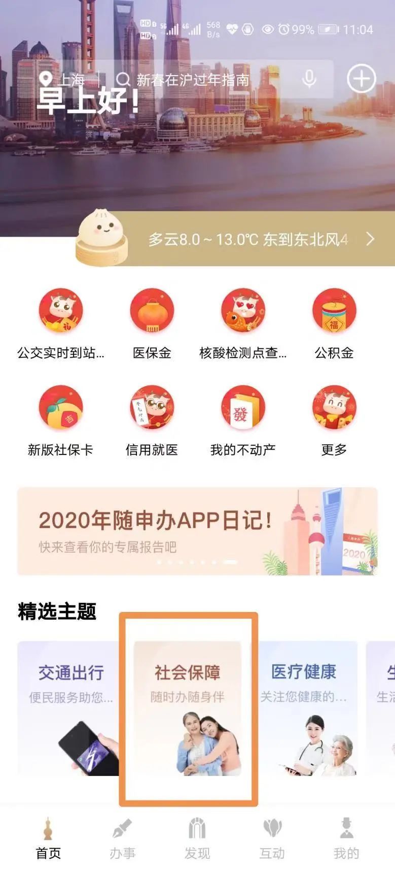 登录“随申办”APP,进入“社会保障”栏目。