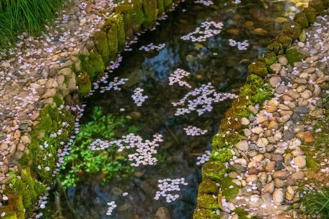 花瓣从树梢飘落的瞬间
