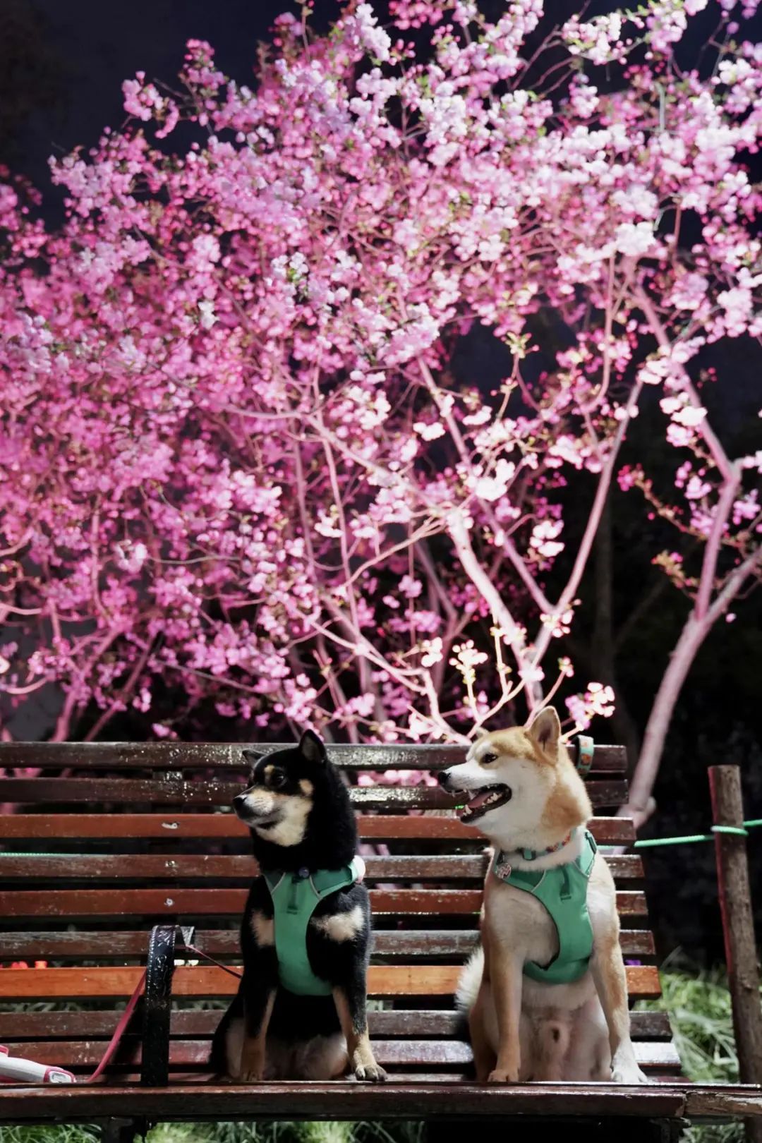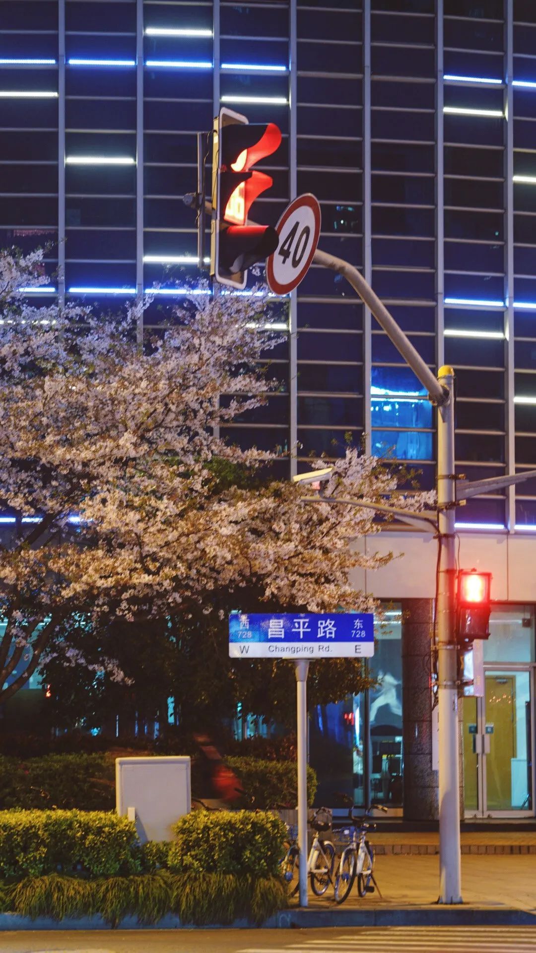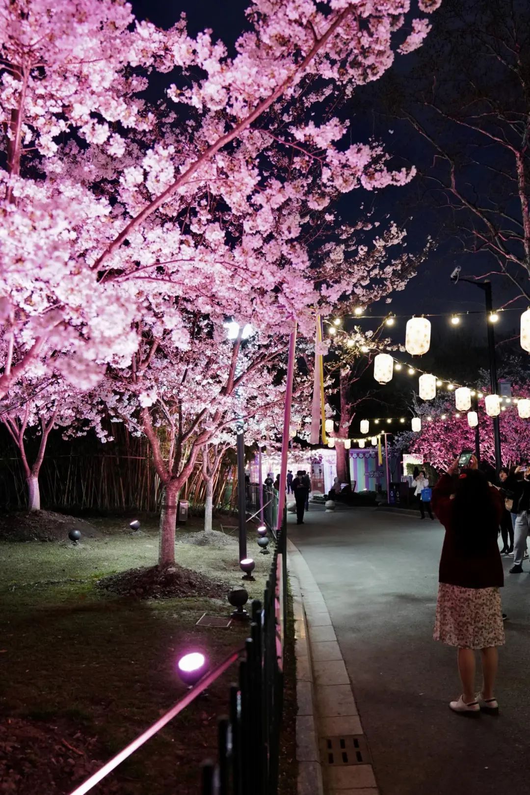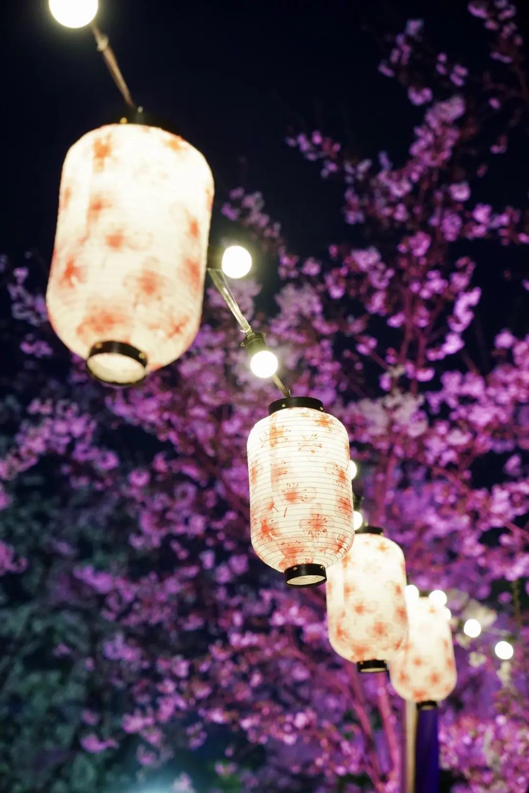 夜如水,樱如雪,看过了阳光下纯白皎洁的樱花,霓虹灯下的夜樱浮现在漆黑的夜空中透出妩媚又别样的姿态,又是另一种绚丽动人。