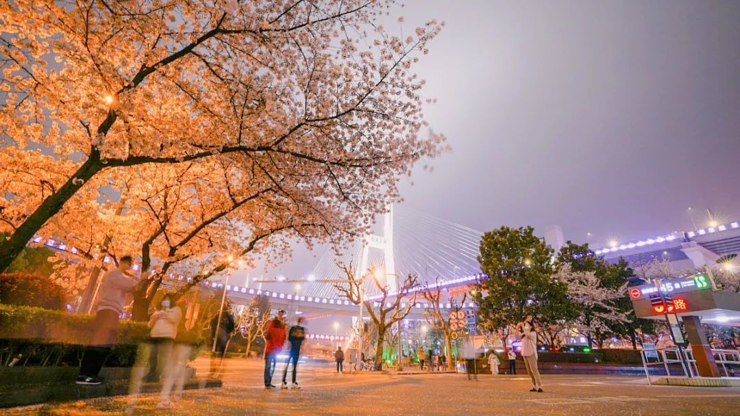 今天绿容君就带你“云”赏申城夜樱