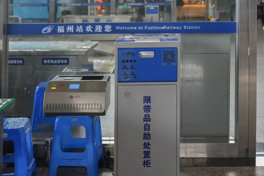 不用担心,部分火车站在安检口处置台旁边安装了限带品自助处置柜,只需几步,就能把限带物品寄回家。