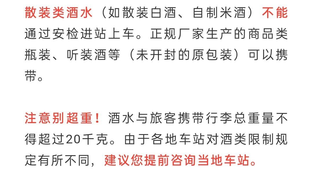 宰杀后的鸡鸭、包装好的海鲜和生鲜肉类,以及腊肉、腊肠、火腿等熟食制品,在不超重的情况下可以携带,请妥善保管,以免污染车厢环境。