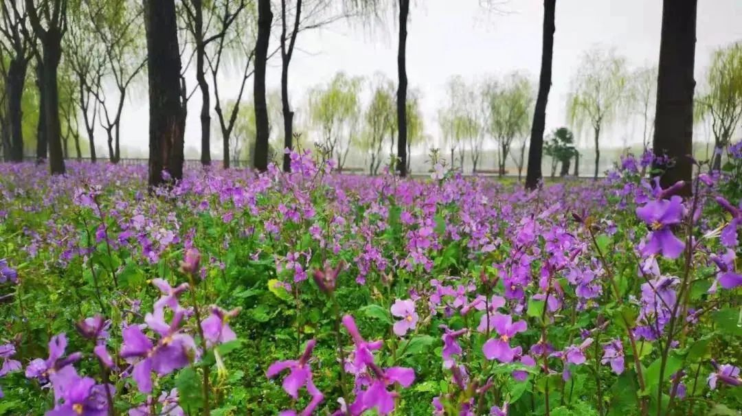 当下的广富林郊野公园已是一派春意,空气中满是青泥和花香的味道,大片大片的二月兰在路边开成了一片紫色海洋,还有桃花、梨花、油菜花……开出了一个娇嫩嫩的春天。