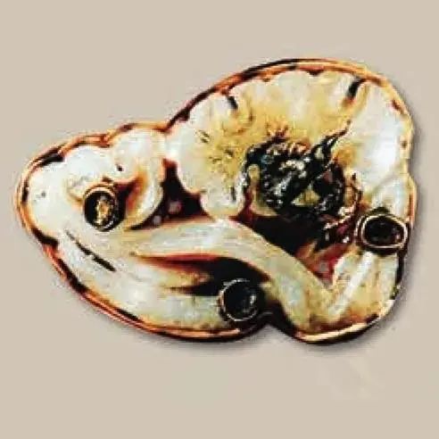 白玉荷叶水草纹额带饰(左)白玉凤纹额带饰(右)
