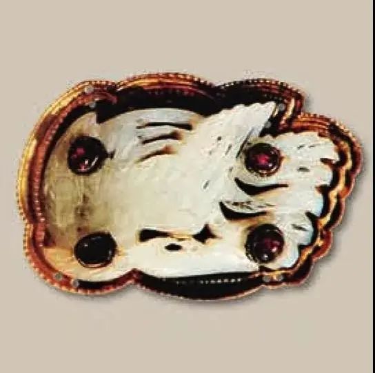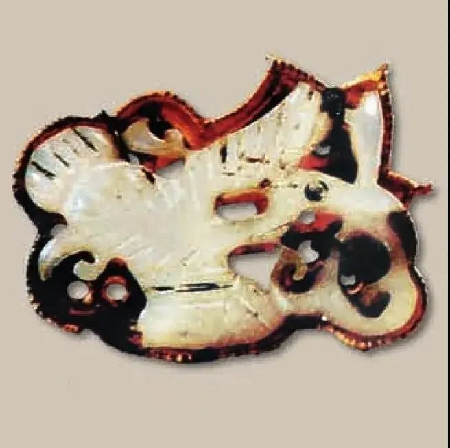 白玉螭纹额带饰(左)白玉雁衔水草纹额带饰(右)