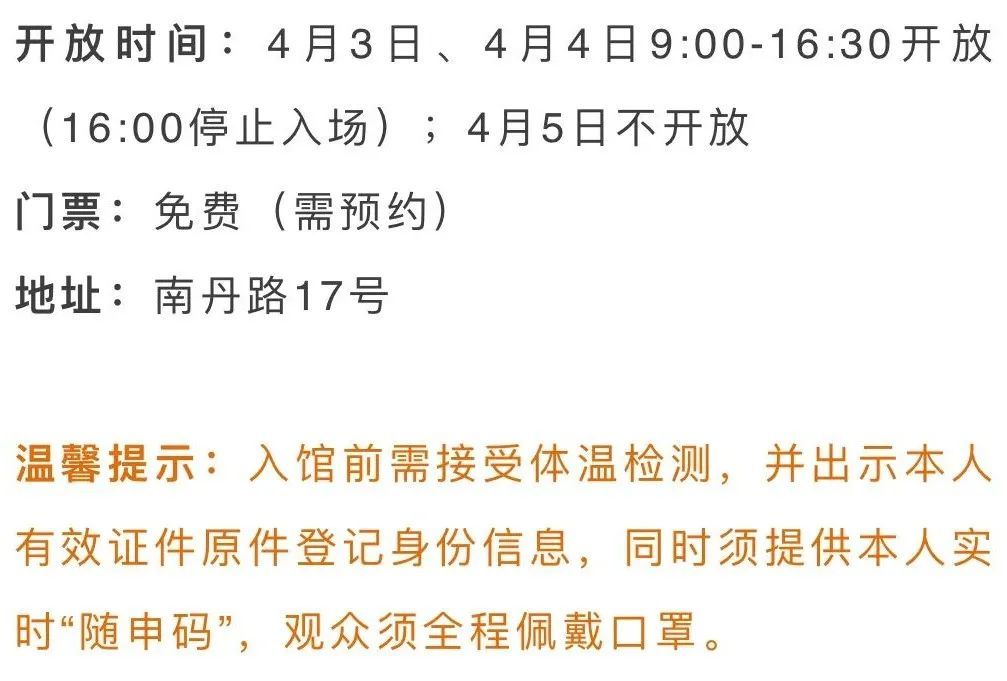 开放时间:4月3日-4月5日8:00-18:00开放