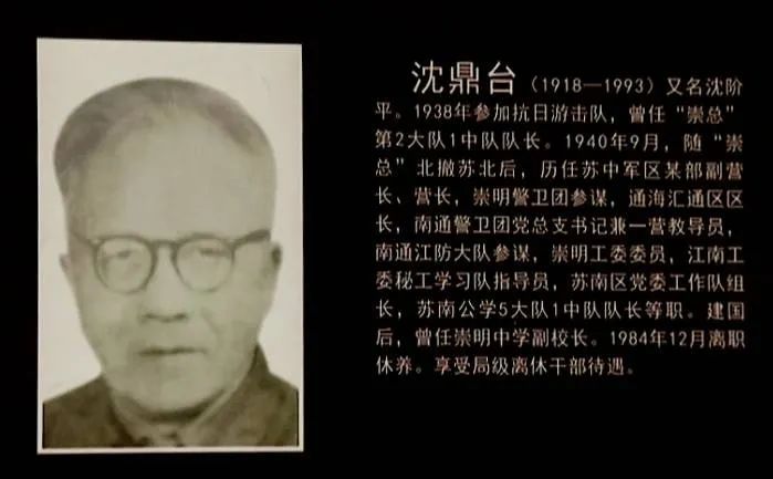 1940年8月,“崇总”大批战士北撤,10月部队改编为崇启海常备旅,12月中旬又改编为苏四区游击指挥部第三旅六团,大爷爷沈鼎法为团长,驻防如皋县掘港镇。来到苏北后,为了不让崇明的亲戚朋友受到牵连,二爷爷改名为沈仲彝,爷爷改名为沈阶平。
