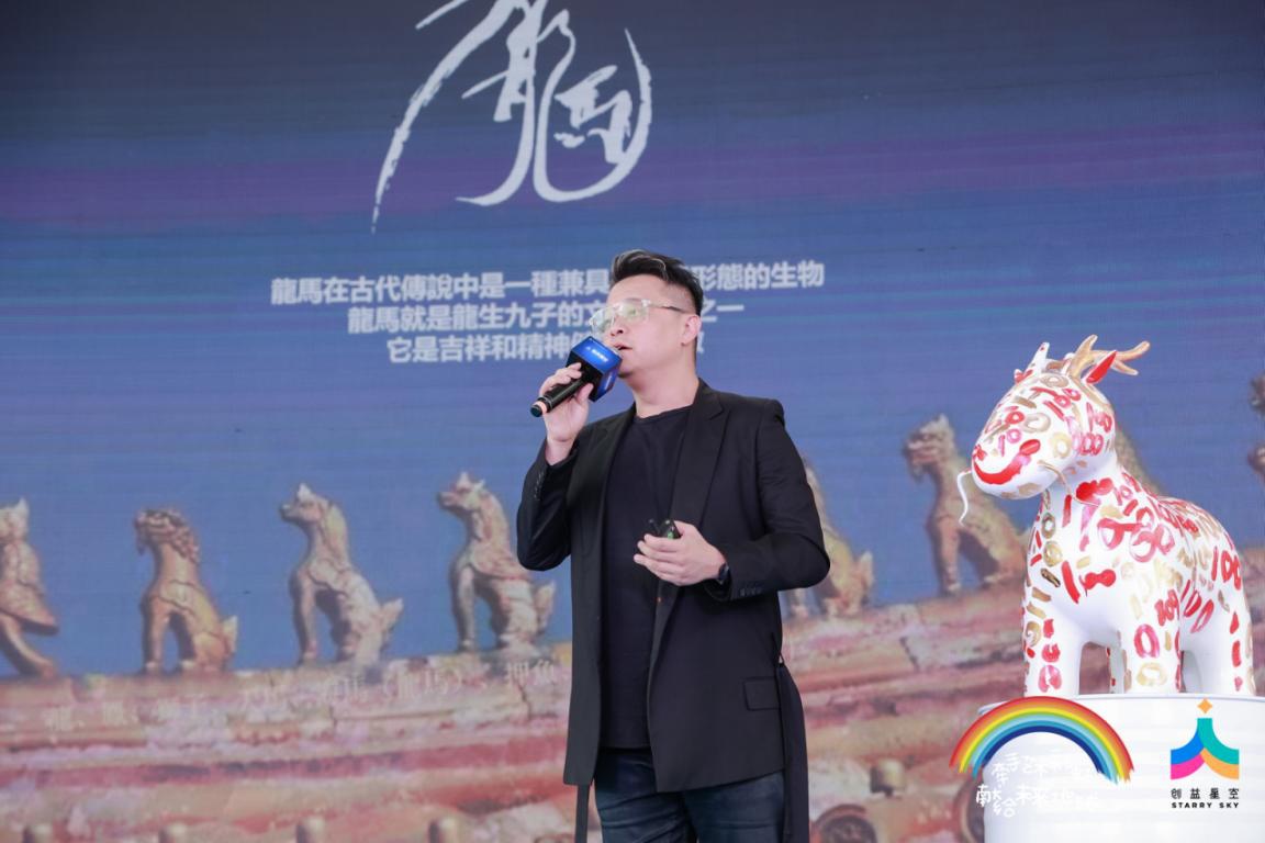 著名跨界艺术家马兴文老师随后同与会者分享了3月16日与自闭症青少年共绘建党100周年小龙马纪念雕塑的故事。自闭症青少年群体需要社会的关怀与支持。为了更好的帮助自闭症青少年开发艺术创作潜能,建立与社会沟通的桥梁,他将这款与上海、澳门自闭症青少年共同创作的小龙马雕塑捐赠给“创益星空”项目,用于未来的慈善拍卖,所获收益将资助公益项目和自闭症青少年。