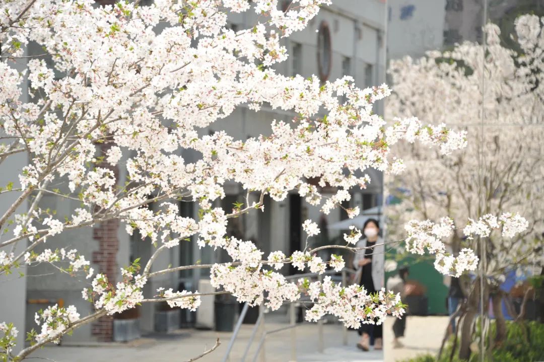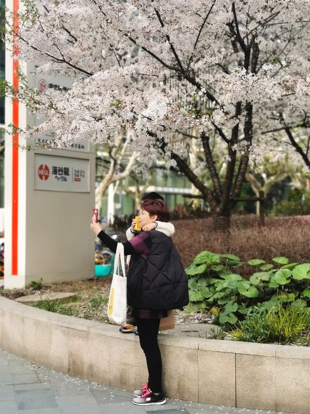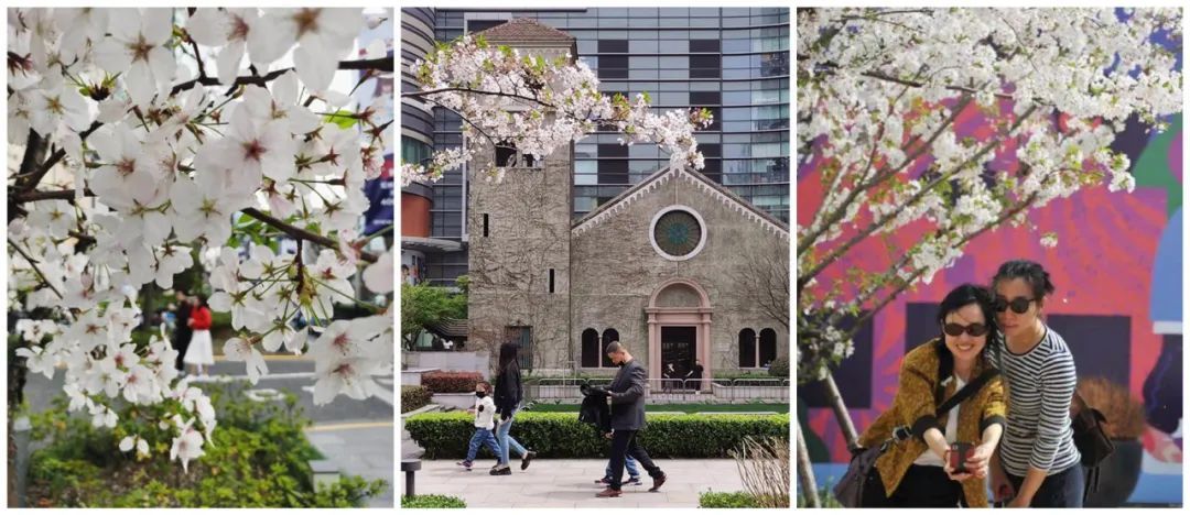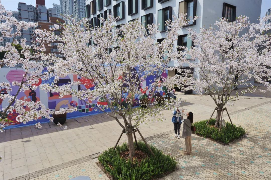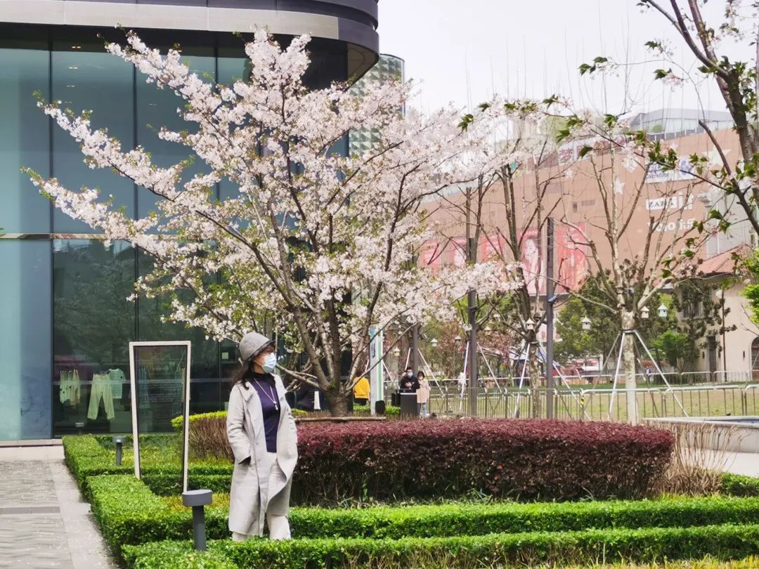 春日的上生·新所总能吸引众多市民前来打卡,园区九号楼旁的三棵樱花树更是如此。