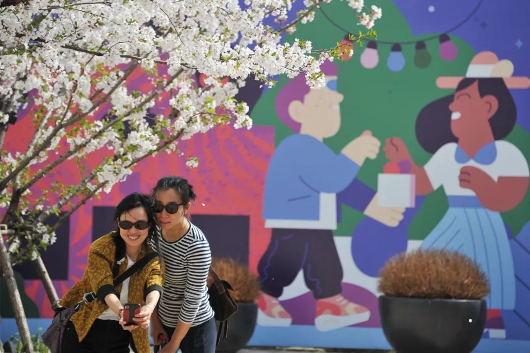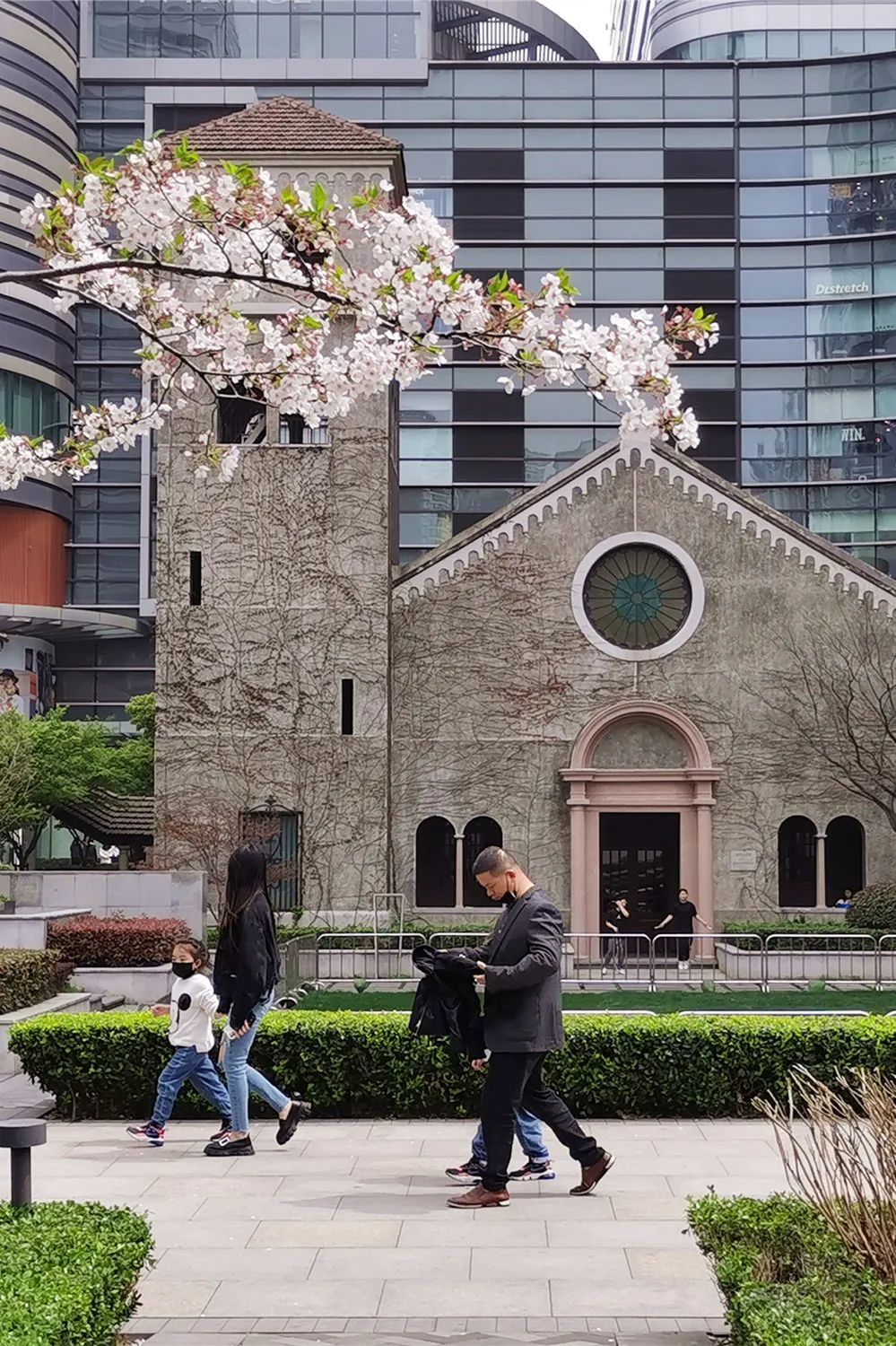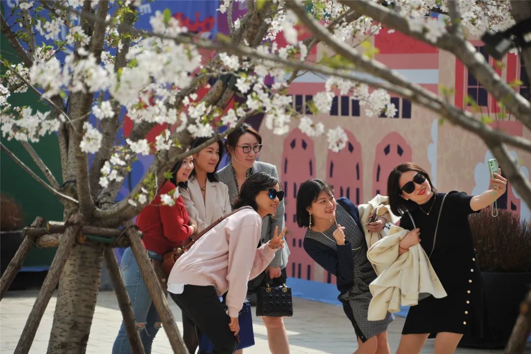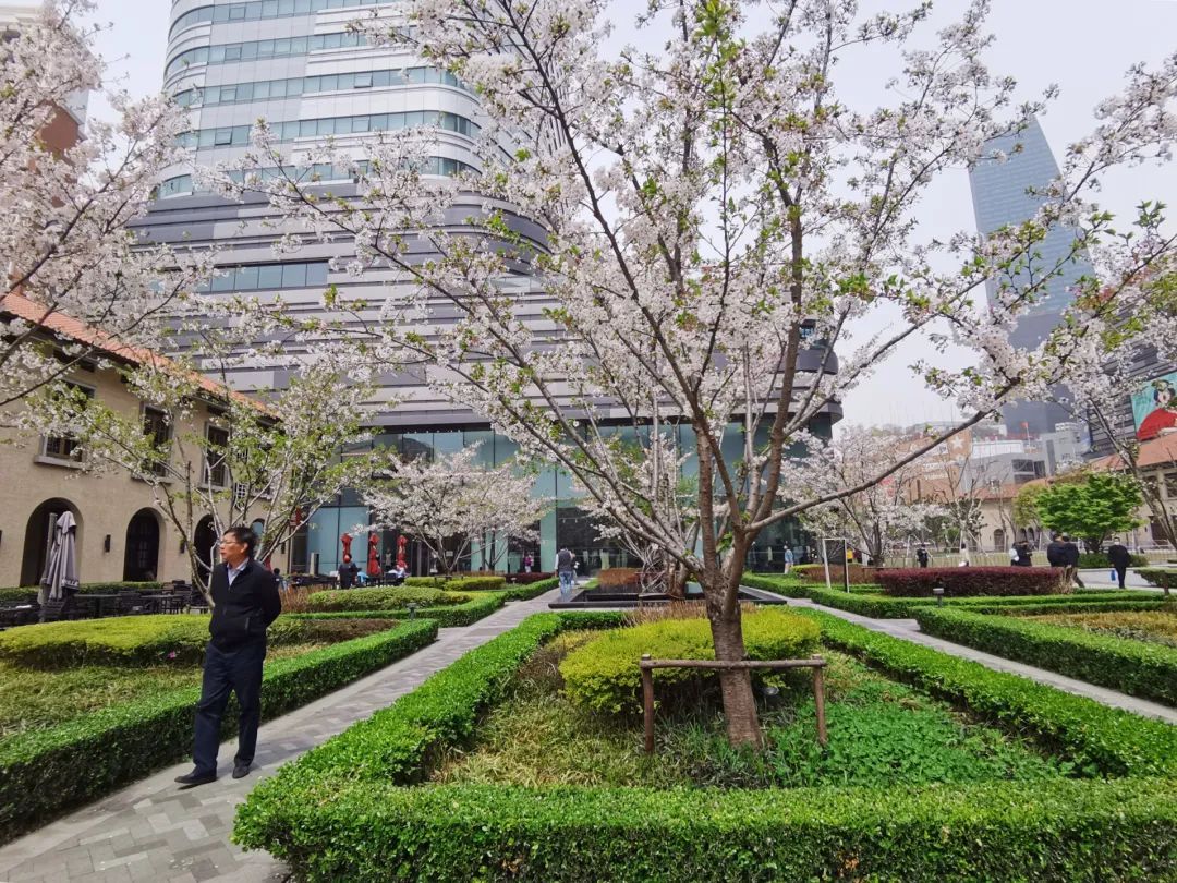 春日的上生·新所总能吸引众多市民前来打卡,园区九号楼旁的三棵樱花树更是如此。