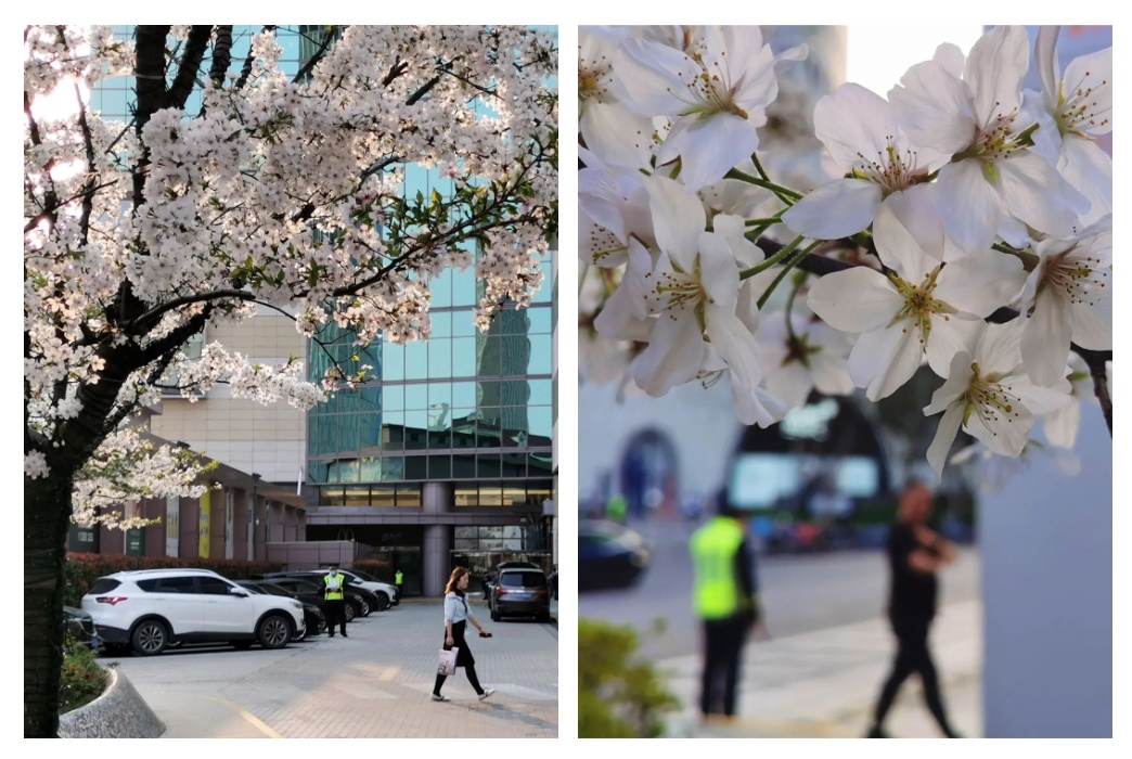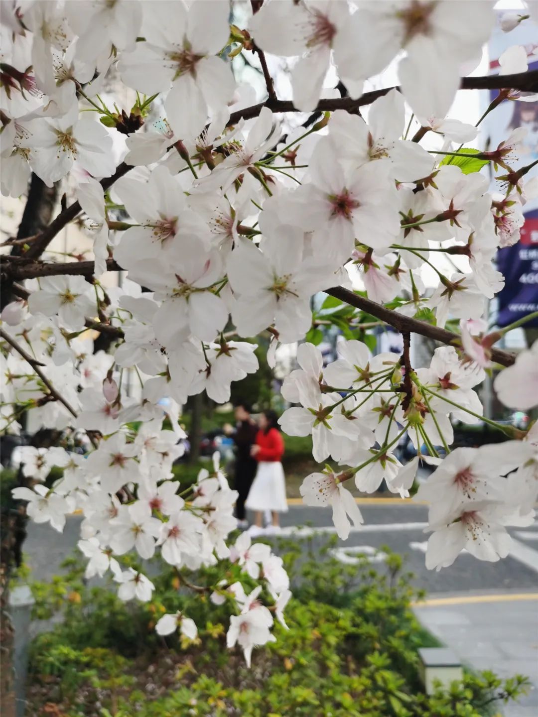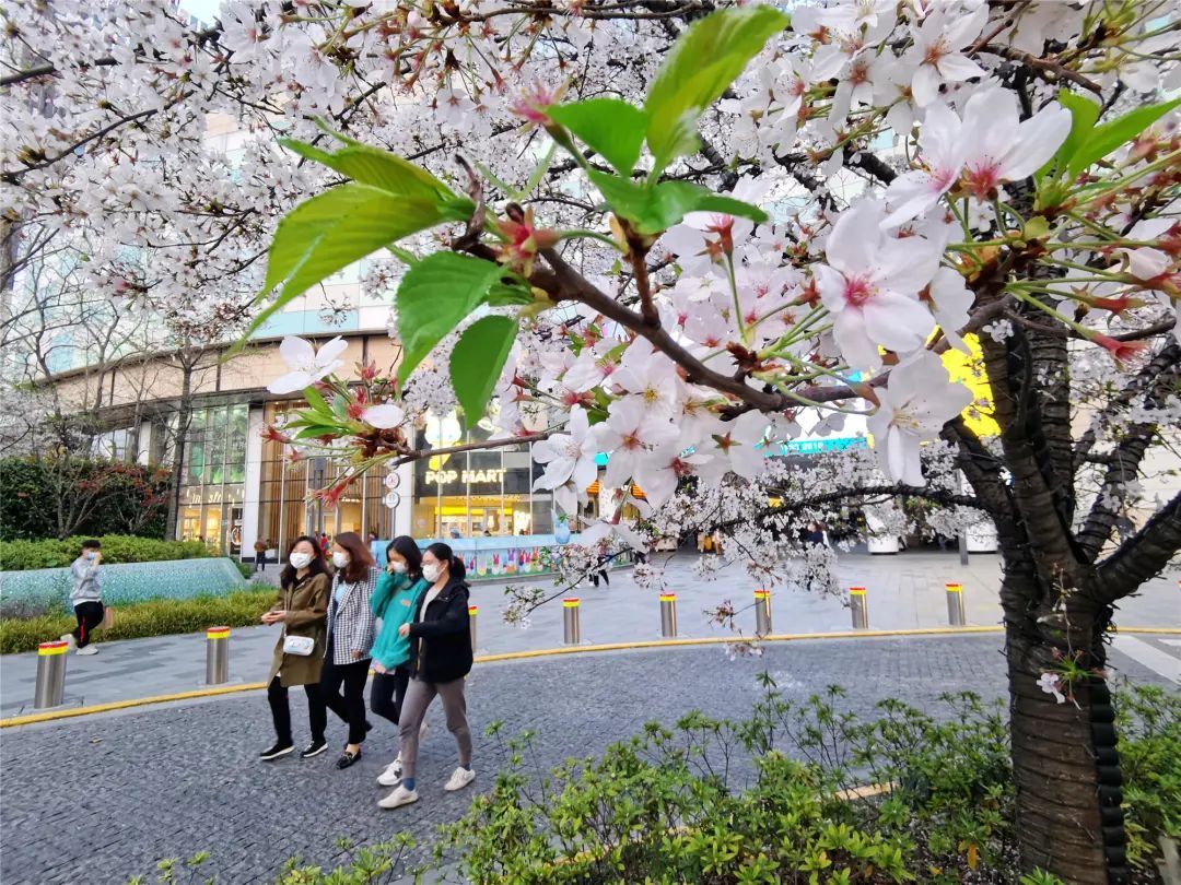或独自盛开,或一起绚烂,朵朵樱花散发着浪漫又温馨的气息,让繁华的中心城区也尽显温柔。
