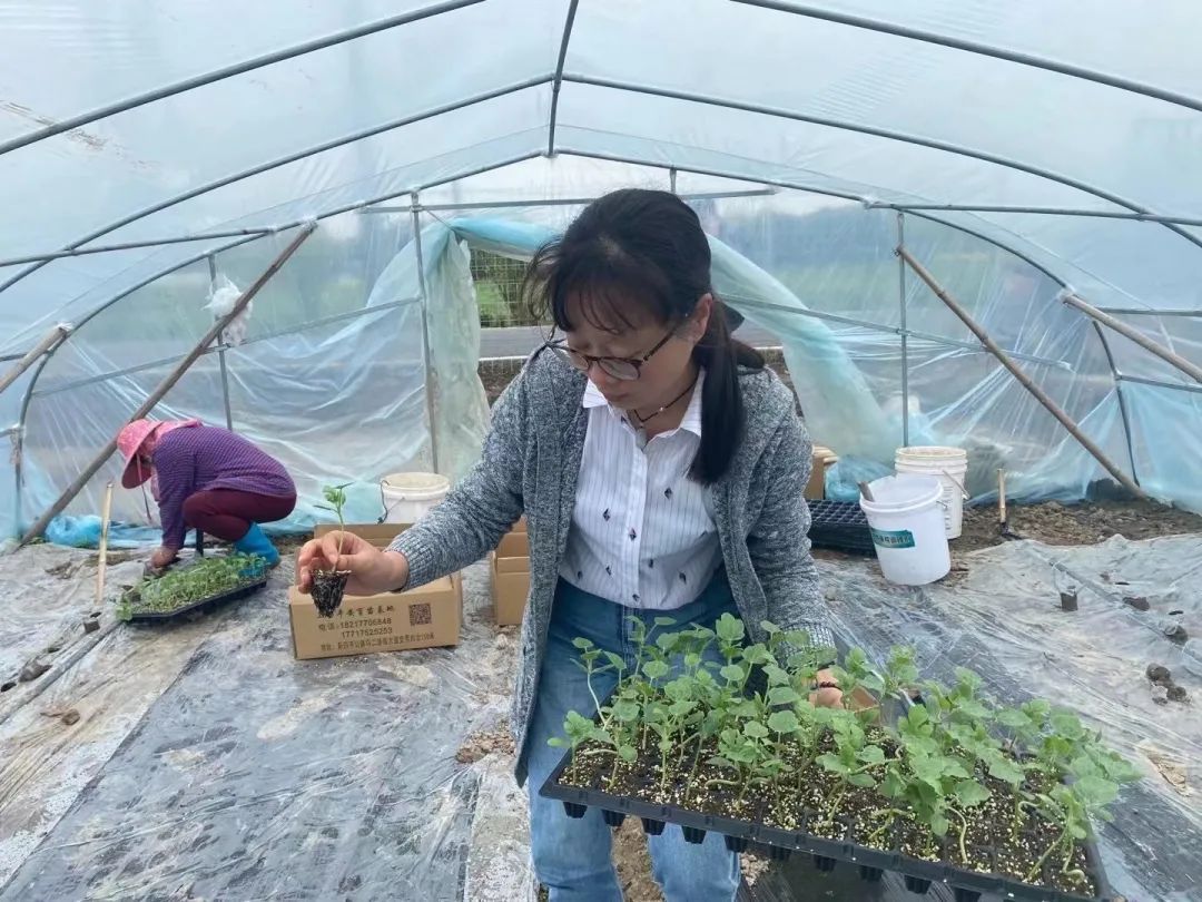 一方面,积极与上海市农业科学院进行合作,开展果树新品种与新技术引进、筛选、规范化栽培等技术研究,将科研成果应用到田间地头,培育新优农产品品种。另一方面,工作人员们也瞬间化身“农夫”,拿起农具来到田间地头,开启了他们的种植生涯。他们一边在实践中积累经验、探索问题,一边和农科院专家对接种子引进,目的就是为了掌握核心技术便于新优品种在全村的推广,打造新优品种的“百果园”。