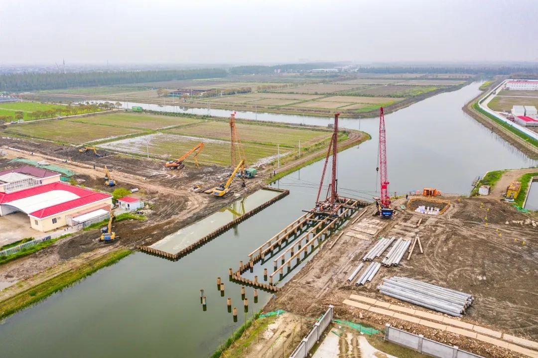 工程中的一座新建跨河桥梁——冬涟桥已于3月23日开工,桥梁东侧桥台PHC桩基基础已施工完毕,目前正在进行水中墩桩基施工,预计5月底完成桩基础、墩台及盖梁施工。