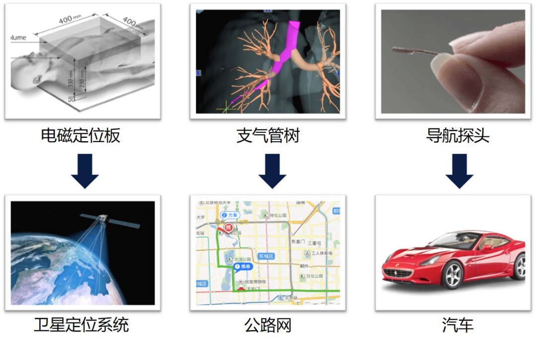 据瑞金医院胸外科李鹤成主任介绍:电磁导航支气管镜的整个操作过程犹如开车经北斗导航到达目的地。