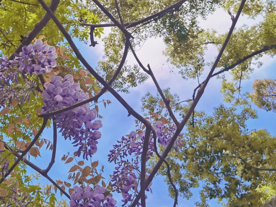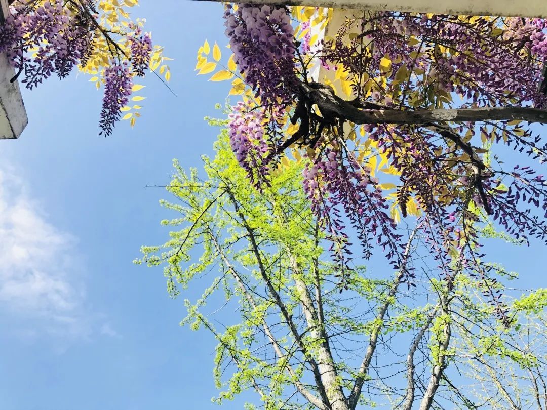 慢慢地,我们向一树一树的樱花告别。转眼,又迎来一串又一串的紫藤。