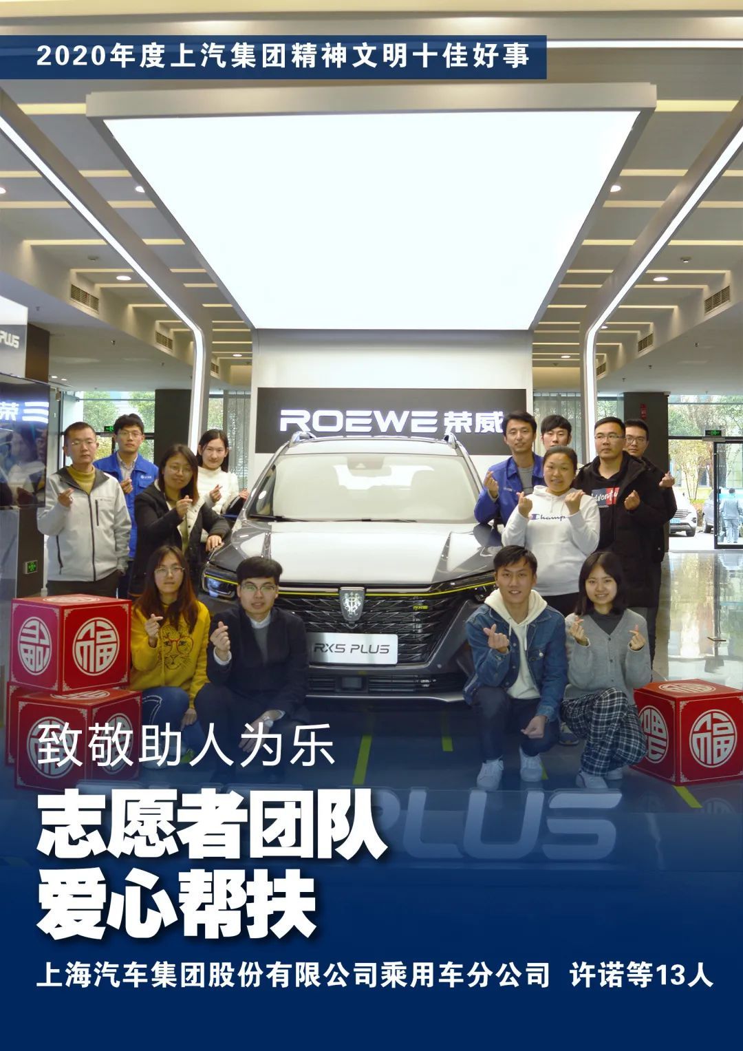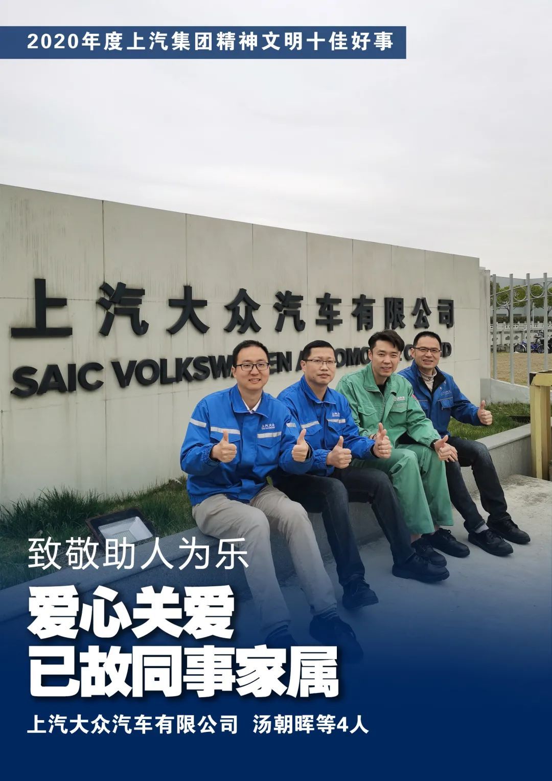 2020年,在上汽集团党政领导下,各单位围绕年度目标任务,积极推进员工思想道德素质建设,涌现出了一批助人为乐、见义勇为、诚实守信、敬业奉献、孝老爱亲等好人好事。在各单位推荐基础上,通过网络投票、单位投票和集团相关职能部室评选,并经集团党委批准,评选出“上汽集团精神文明十佳好事”和“2020年度上汽集团精神文明好人好事网络人气奖”,现予以表彰。