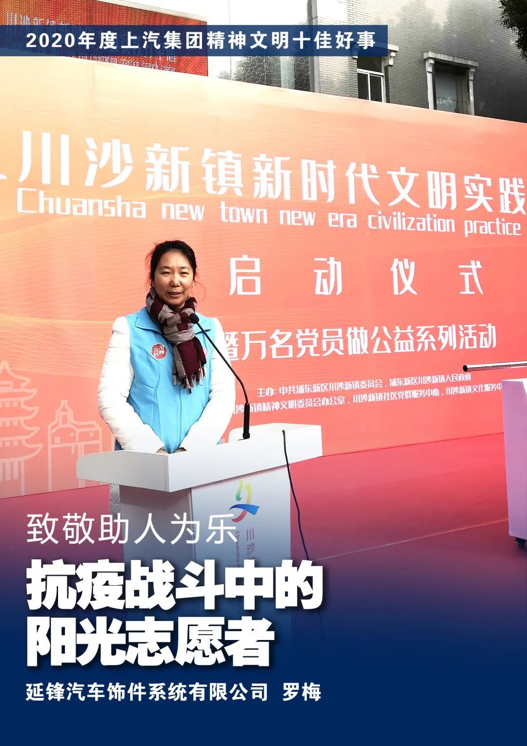 2020年1月,正值疫情爆发期间,罗梅加入了浦东新区川沙名振公益服务社,在抗疫期间多次参与社区志愿服务,还带着在上高三的儿子一起参与抗疫值夜。2020年全年,罗梅公益志愿服务时长273小时。2020年5月,罗梅牵头成立“延锋彼欧浦东公司阳光志愿者服务队”,并担任队长。