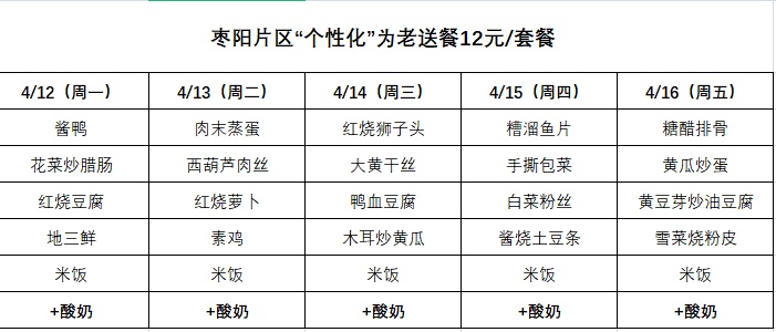 每份盒饭两荤两素加酸奶共计12元