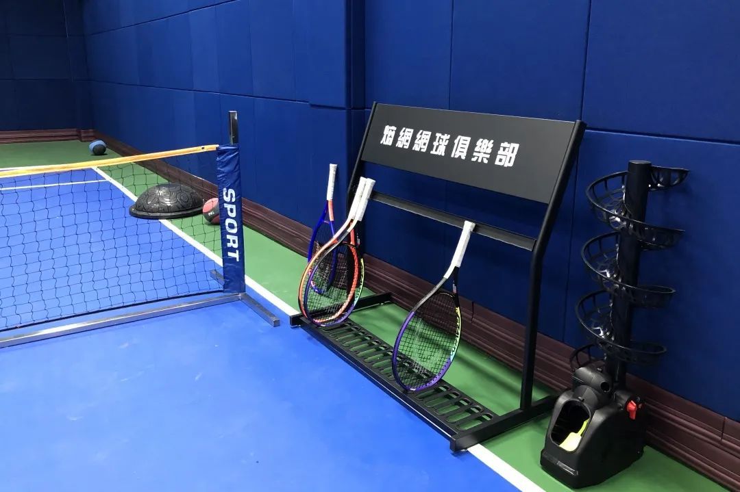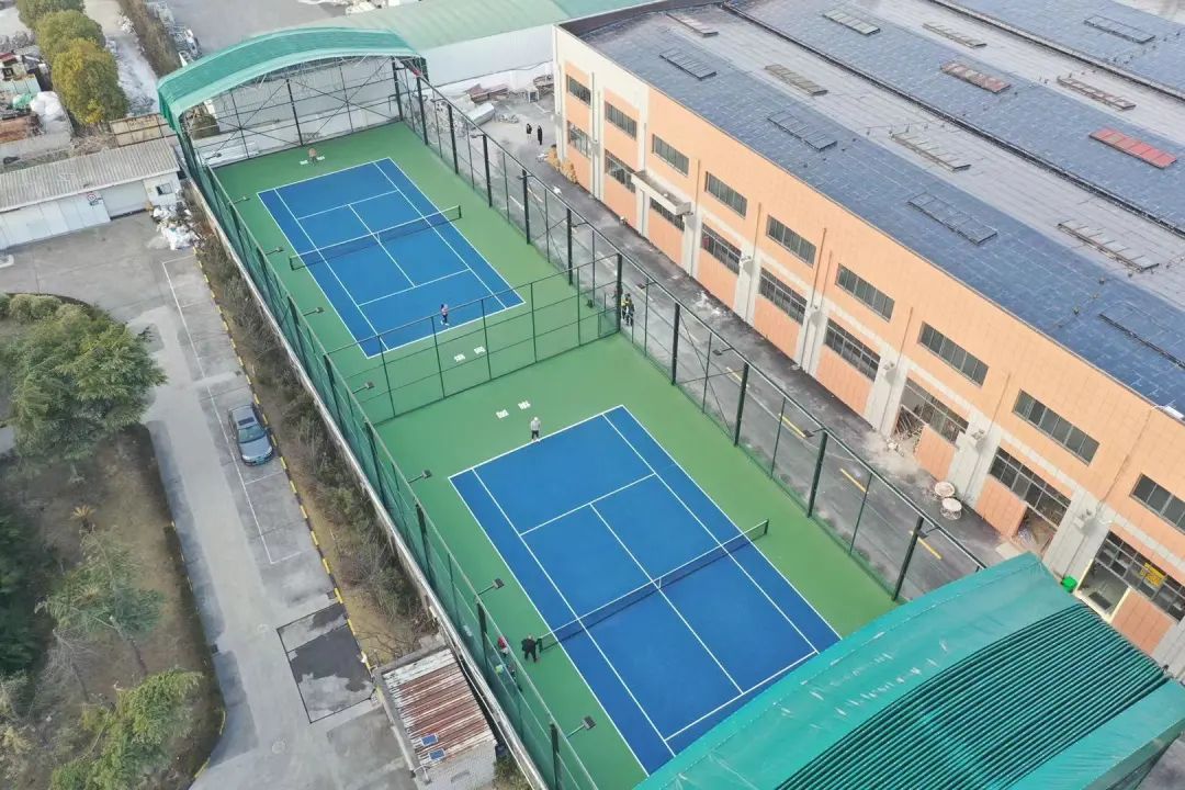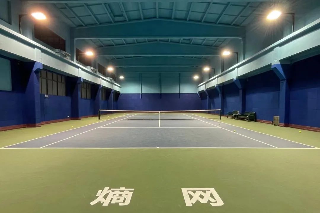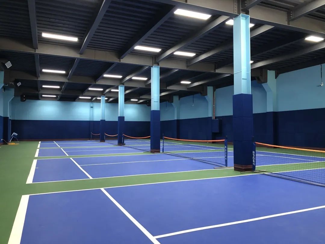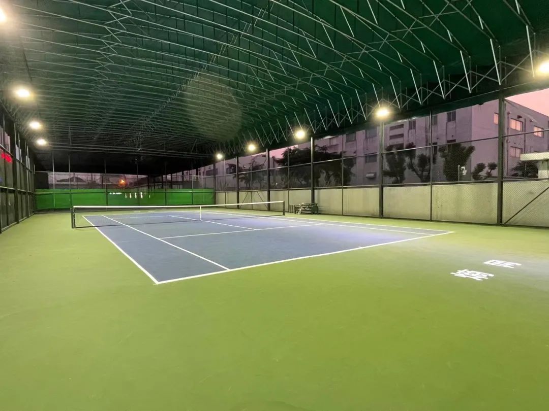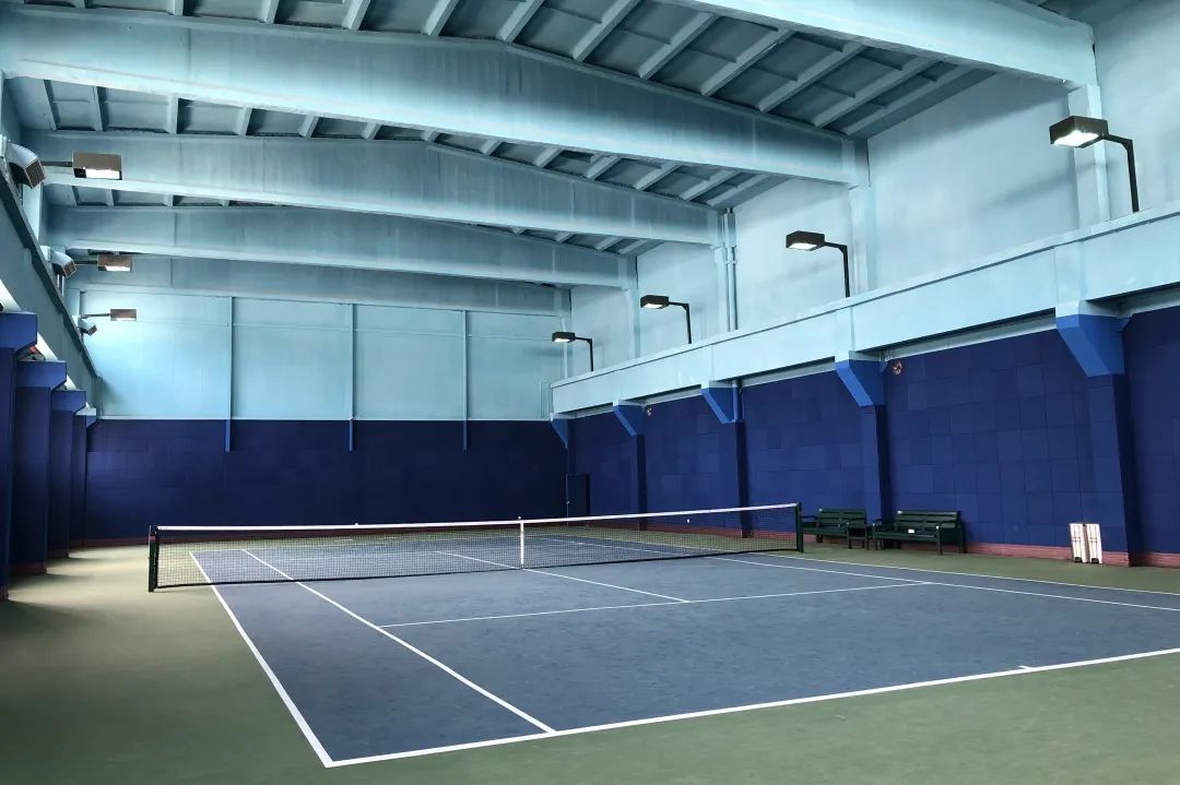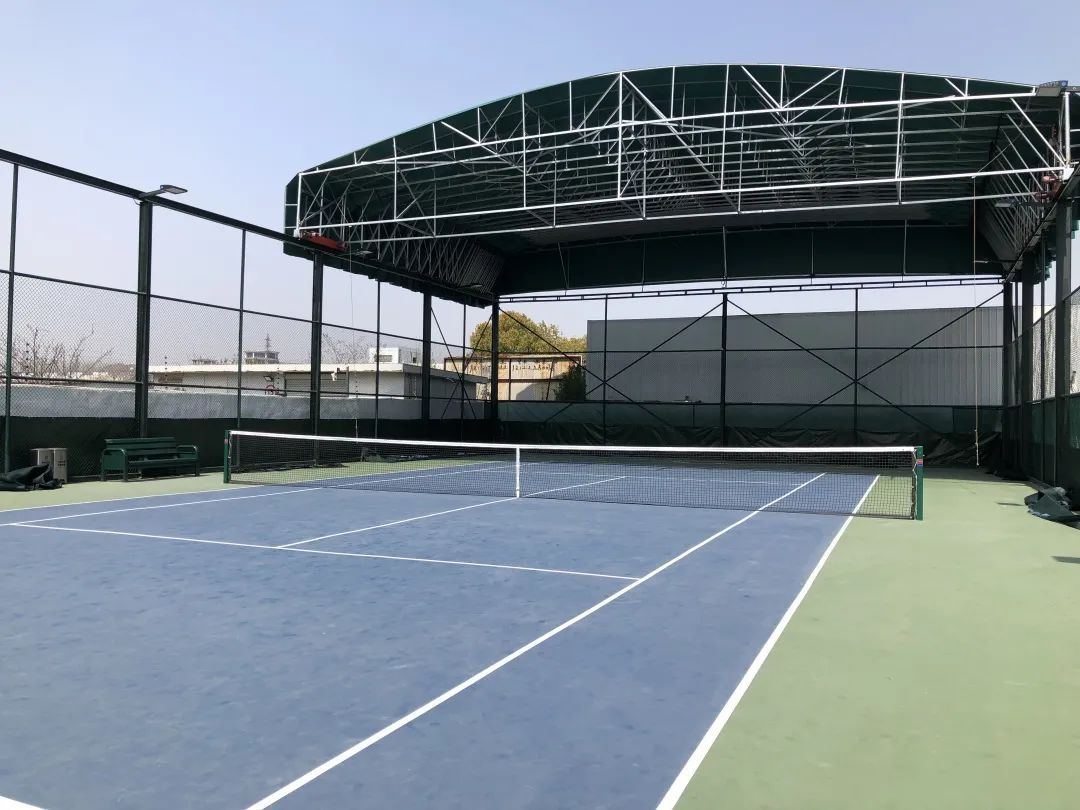 顶棚球场地面采用上海大师赛的标准配色,地面做了弹性颗粒层,具有缓冲效果,可降低运动时地面对膝关节的冲击力。