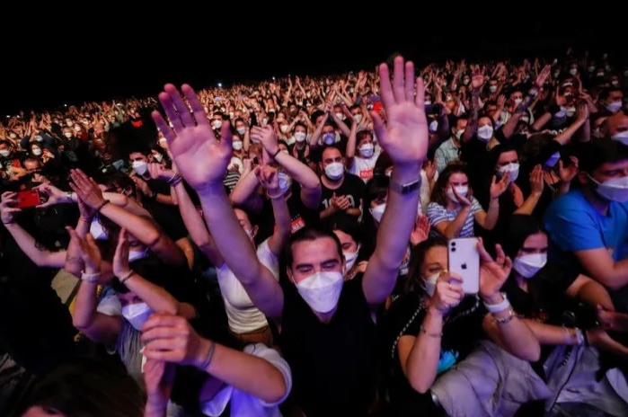 据巴塞罗那(路透社)消息,当地时间3月27日,西班牙巴塞罗那的圣乔治宫体育馆举办了一场大型音乐会,约5000名观众参加。本场音乐会规定观众须全程佩戴主办方发放的口罩,且在入场前进行新冠病毒快速抗原检测,共有6名观众被检测出阳性而被禁止入场。