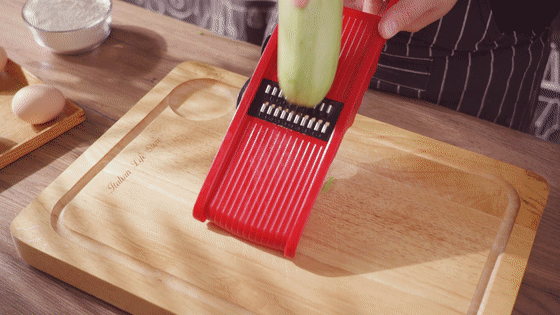 擦西葫芦丝,西葫要选新鲜、嫩而直的,冷藏以后做更好。
