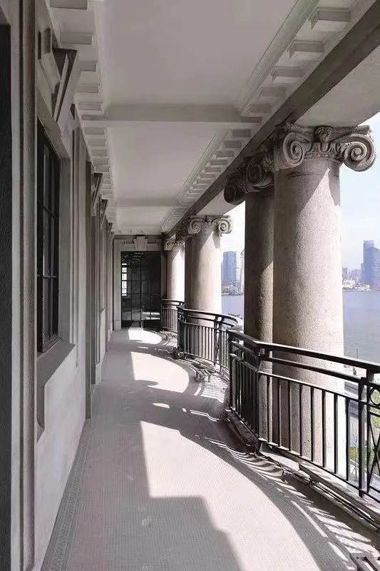 抬头看大楼的3到5层,向内凹陷的部分为巴洛克廊式内阳台,还围有半圆形的铁栏;