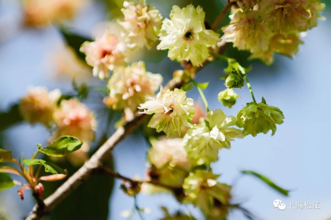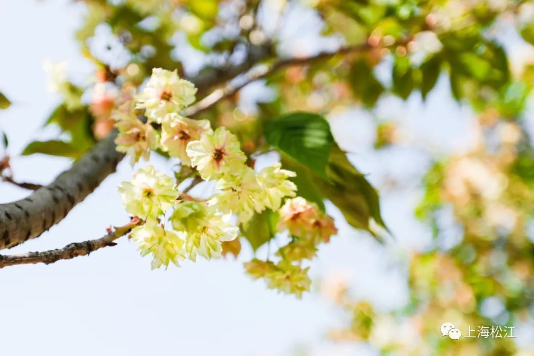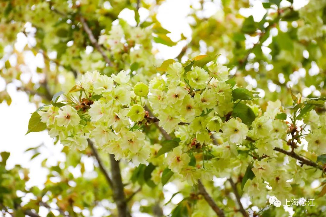 小松在现场看到,这几株绿樱的树型并不大,一簇簇的淡绿色花朵已经挂满了枝头,与周围粉色的樱花相比,显得可爱又独特。