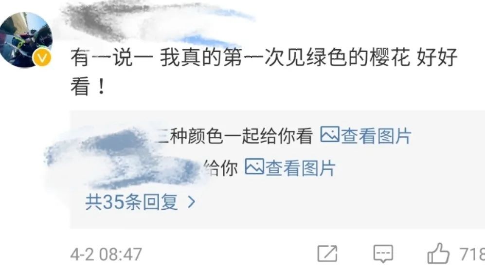 据悉,这些绿色的樱花品种名叫“郁金”,属于晚樱品种,由于数量稀少,十分珍贵。