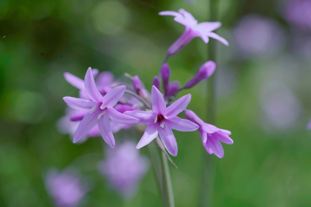 紫娇花:石蒜科,多年生草本植物。其外观除花色与中国的韭菜不同外(中国的韭菜一般为白色花,此花为紫色),其余特征均与中国的韭菜相似,且该植物全株均有浓郁韭菜味,并可和中国韭菜一般食用,炒、凉拌、做汤等均可。