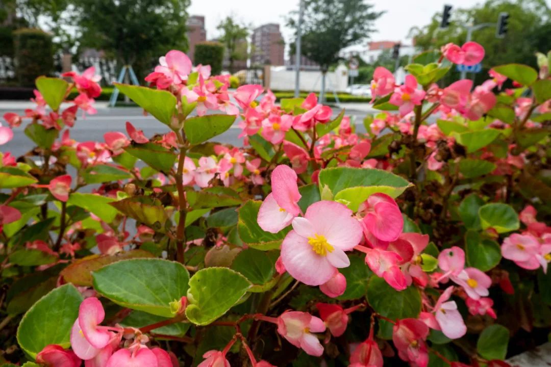 四季秋海棠:秋海棠科,秋海棠属植物,多年生常绿草本。四季秋海棠叶色光亮,花朵四季成簇开放,且花色多,花朵有单瓣及重瓣,是园林绿化中花坛、吊盆、栽植槽和室内布置的理想材料,深受园林绿化工作者及普通民众的喜爱。