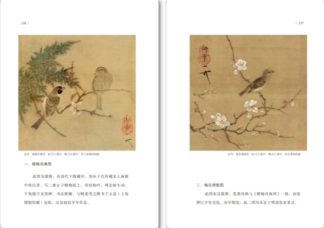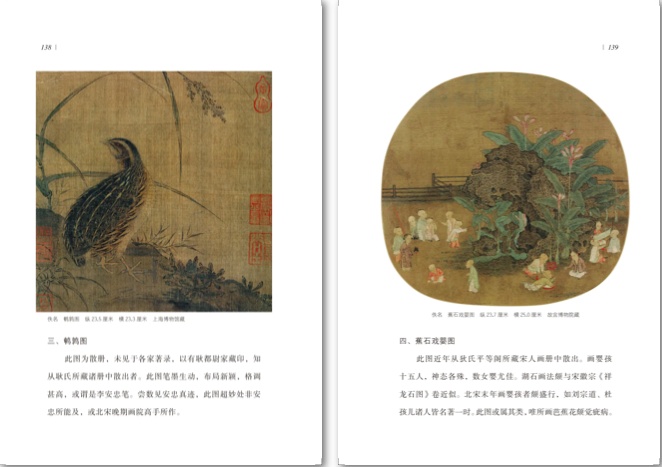 此册精选两宋名画60幅,涉及山水,人物,花鸟,界画等多种门类,其中39幅为前人各家著录所未载。每图后有张珩撰写的说明,对每幅画的作者、著录、笔墨风格、题字签押、收藏出处和作品特点详加考证、评论。
