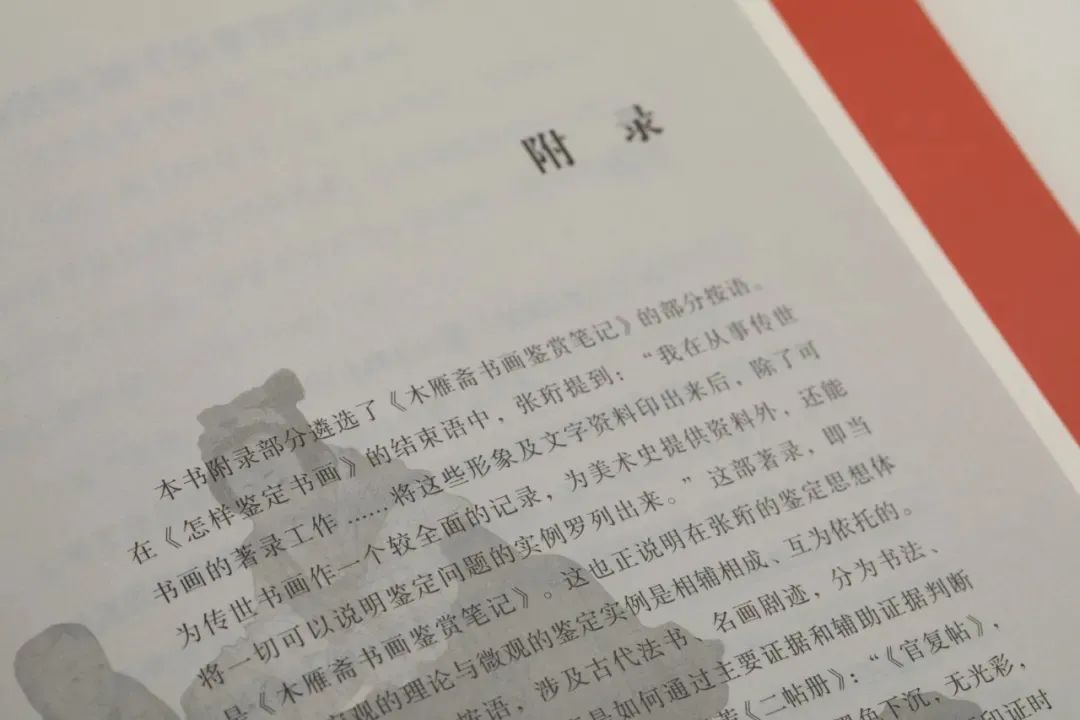 本书附录部分遴选了《木雁斋书画鉴赏笔记》的部分按语。在《怎样鉴定书画》的结束语中,张珩提到:“我在从事传世书画的著录工作 ...... 将这些形象及文字资料印出来后,除了可为传世书画作一个较全面的记录,为美术史提供资料外,还能将一切可以说明鉴定问题的实例罗列出来。”这部著录,即当是《木雁斋书画鉴赏笔记》。这也正说明在张珩的鉴定思想体系中,宏观的理论与微观的鉴定实例是相辅相成、互为依托的。