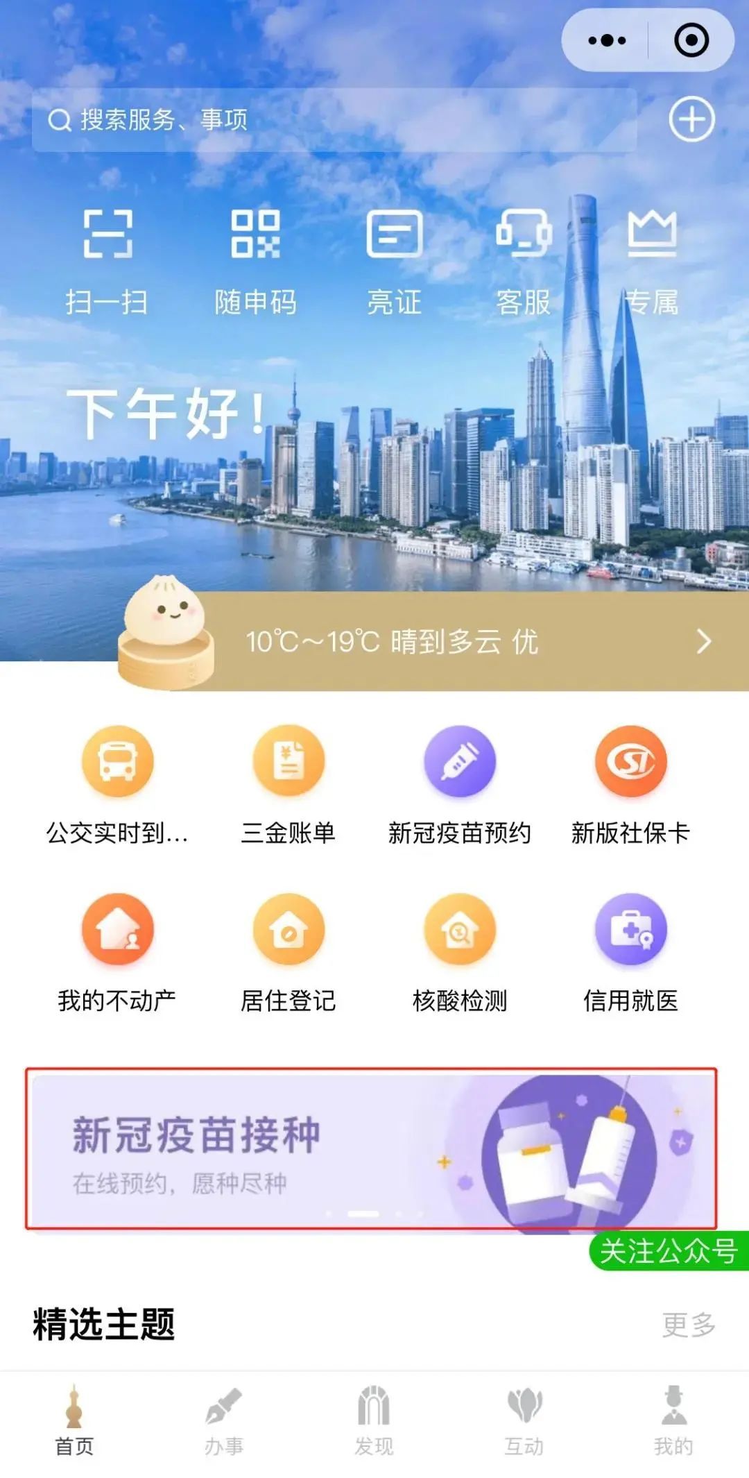 在随申办小程序首页,点击“新冠疫苗接种”。