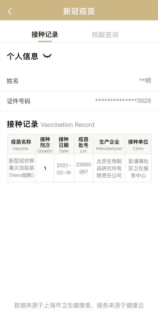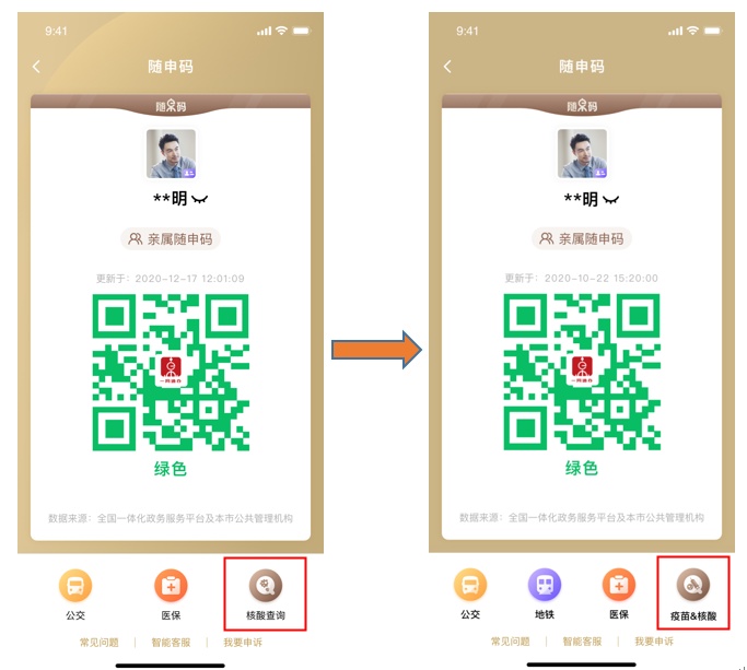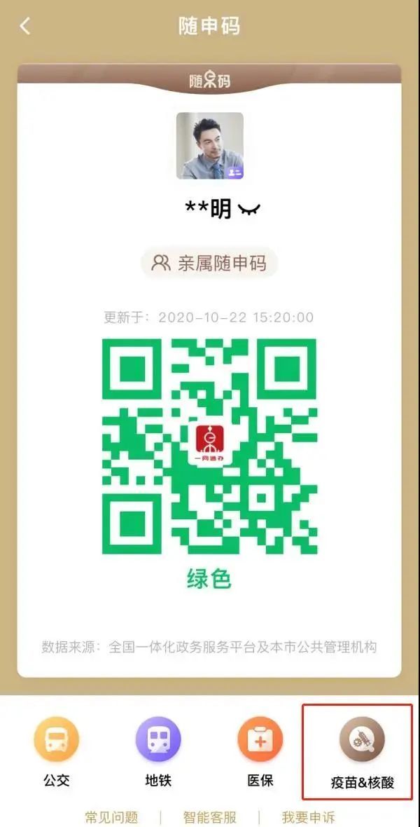 “随申码”原有的“核酸查询”功能已优化升级为“疫苗&核酸”,市民在使用“随申码”时即可方便查到接种记录。