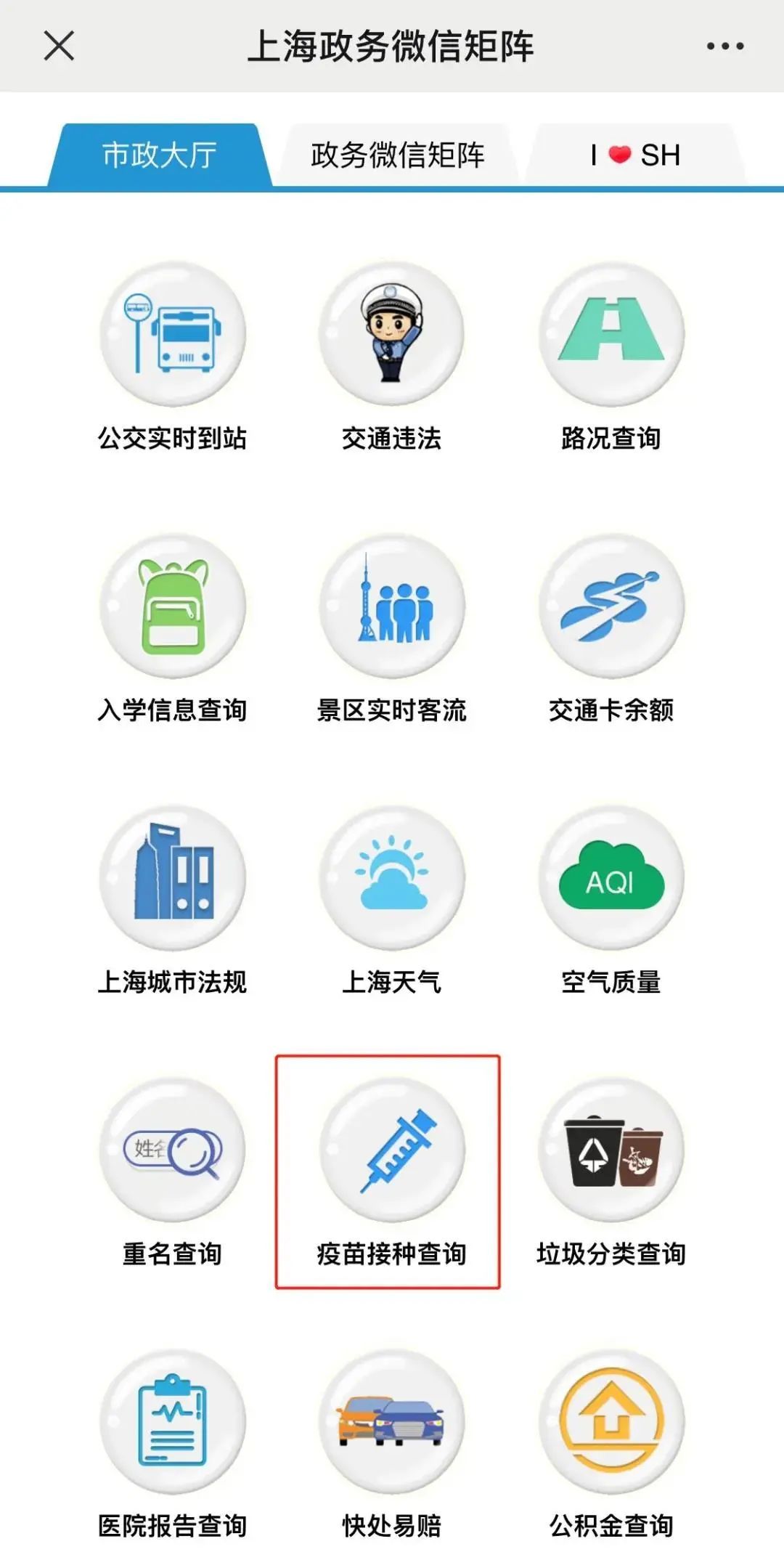 2、点击由上海健康云与上海发布联合推出的“疫苗接种查询”功能。
