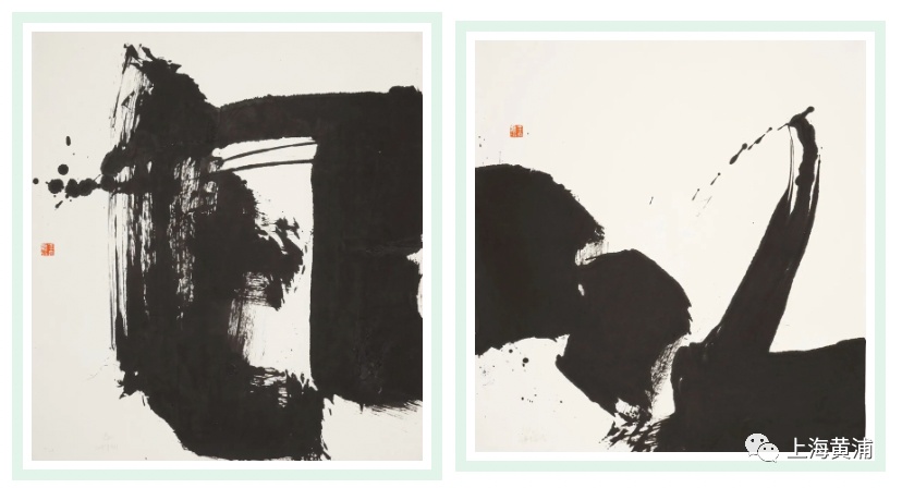 丛培波的《迅》《以》现代水墨书法搭配胡桃木餐桌,构成极简而富有禅意的空间。