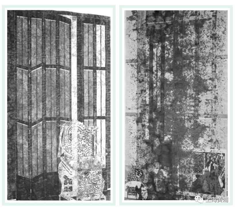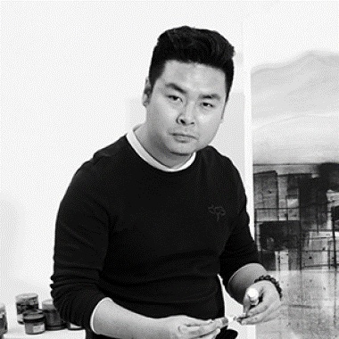 背景处选用了中国新锐艺术家邢思东相近色彩主题的代表作[映],以中国传统版画笔触演绎抽象艺术,与源自意大利的创意家具构成和谐而新奇的组合。