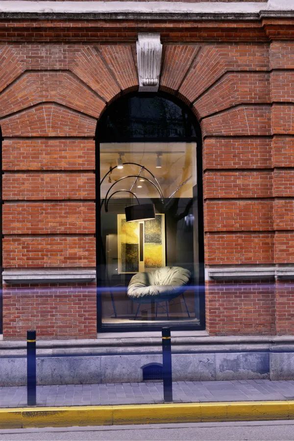 红色T-chair将T恤的外观轮廓引入靠背设计中,极简实用而又妙趣横生,Closer草垛椅以自然为灵感,搭配Sottarchi抛物线落地灯,打造惬意静谧的角落。另两扇橱窗刻意留白,显隐间透露精品展的面貌,若隐若现的神秘感引人入胜。