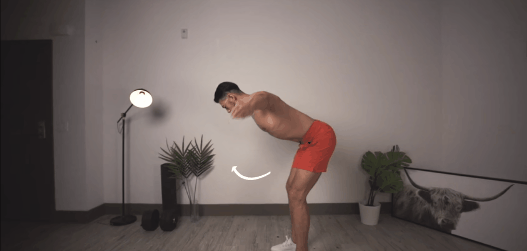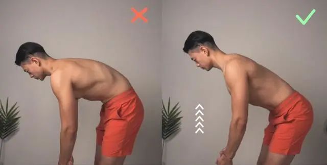 值得注意的是,整个动作过程中千万不要弯腰。如果觉得做多了,腰比较酸痛,可以将身体稍微抬高一点点角度,做十五到二十次,然后换下一个动作。
