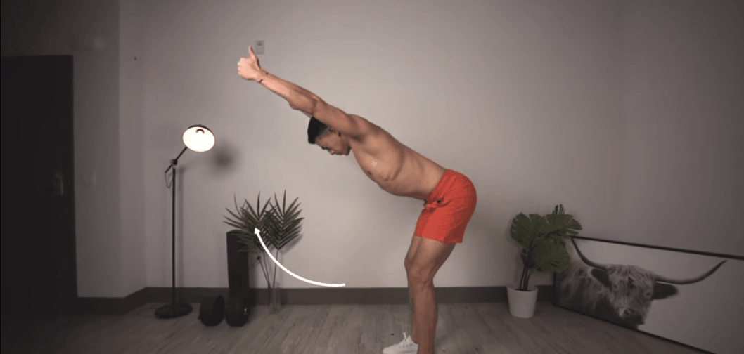 最后将两个掌心相对,向前抬手臂,将身体呈现一个Y字形。这个可以强化中下斜方肌和肩膀前束,同样的保持三秒,然后还原。