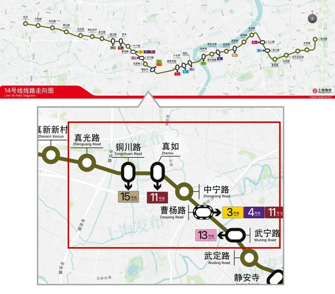 轨交14号线,是一条由城市西北地区至东北方向的横向主要快速交通线,也是目前路网中继1、2号线后又一条A型车8节编组大运量的线路。据了解,该线路预计今年底通车,开通的12个换乘站点中,点式换乘与通道换乘各占一半。