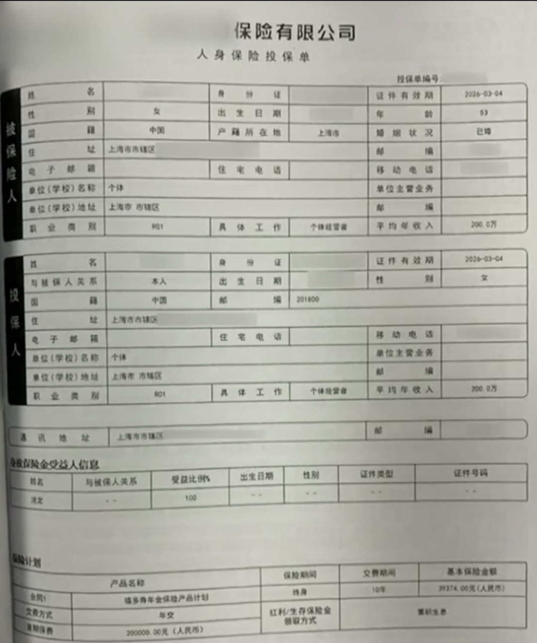 20万元的高端保险,对操劳大半辈子的老雍来说,可以称为天价消费,放在平时几乎想都不敢想。但这是女儿周萍的业务需求,她在一家保险经纪公司上班,为了完成业绩多拿提成,需要拉人头购买保险。而且女儿说,只要完成电话回访,不久后便可申请退保,保费会全额退还。