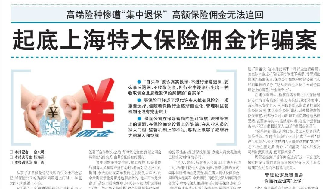 如今,买保险已经成了现代许多人抵御风险的一项重要选择,但随着保险行业逐渐商业化,管理和监管机制还没有完全跟上。在这起保险佣金诈骗案起诉之际,上海市浦东新区人民检察院向涉案的保险公司和保险经纪公司制发了检察建议书并举行公开宣告。