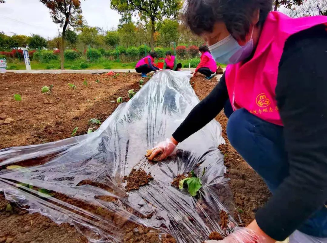 好想法还得有人来实现,现年63岁的杨引芳阿姨在得知居委要打造“共享菜园”后,“爱管闲事”的她便第一个报名参加,而且她还拉上了自己的小姐妹们一起过来帮忙。胡阿姨、朱阿姨和潘阿姨,甚至是70岁老党员苏兵仙也积极加入志愿团队。五朵金花身穿志愿服务者的“红马甲”,锄地、拔草、开荒,忙活个不停。